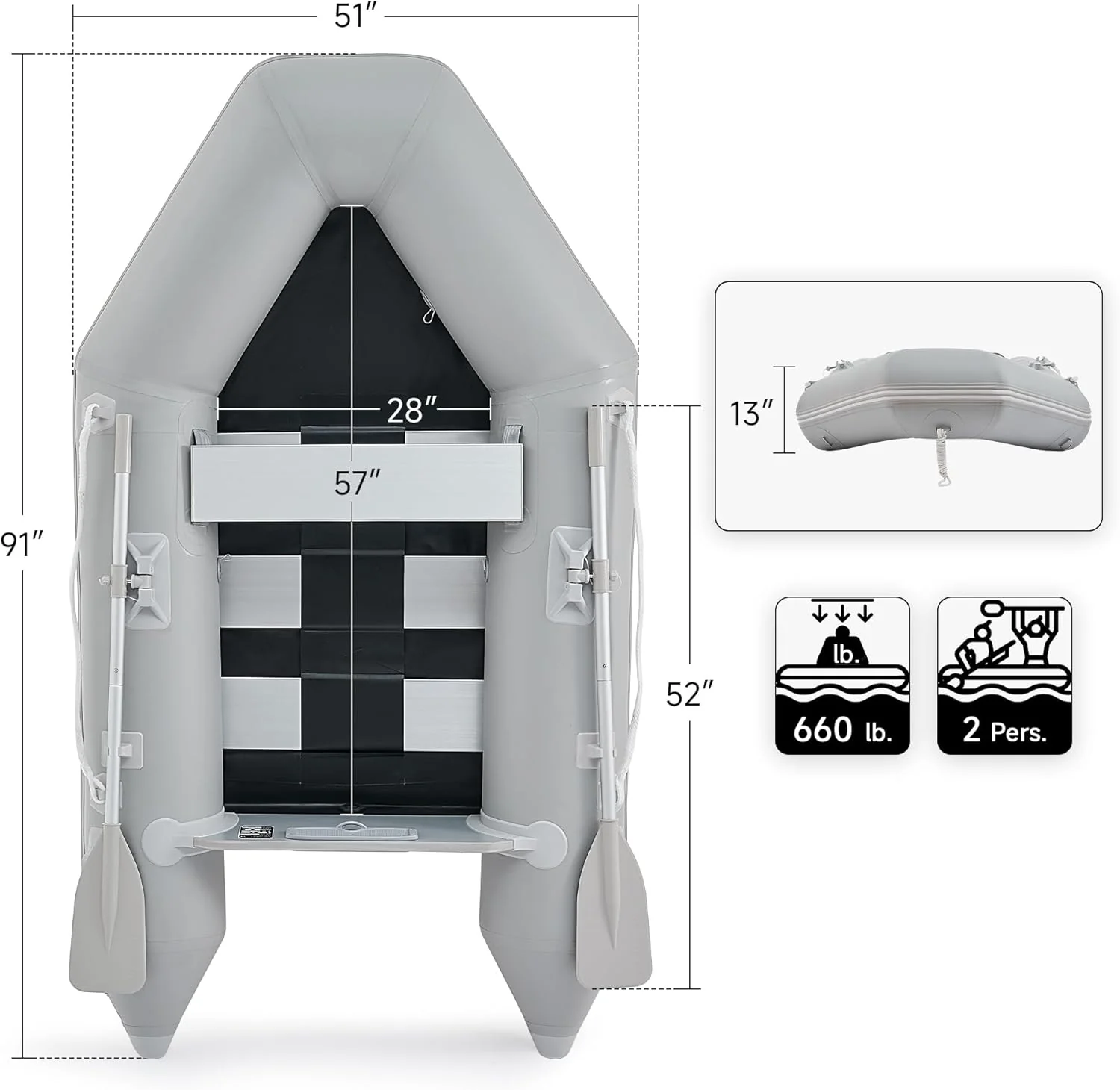 7.5ft Inflatable Dinghy Boat, 2 Person 660lb Transom Sport Tender Boat with Pump Aluminum Oars Floor, Heavy Duty Inflatable Raft Kayak for Adults