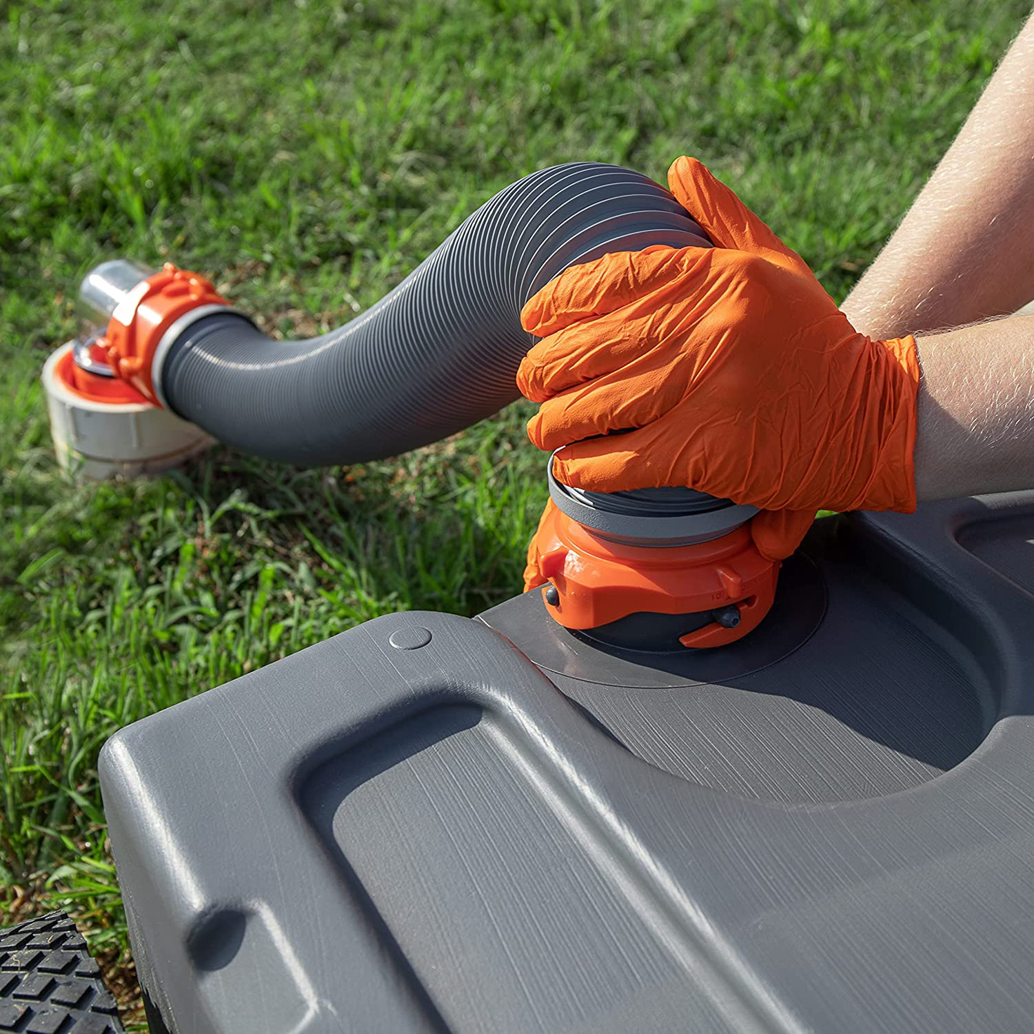 Camco Rhino Heavy Duty 28 Gallon Portable RV Waste Holding Tank with Hose and Accessories Durable Leak Free and Odorless RV Tote Tank (39004)