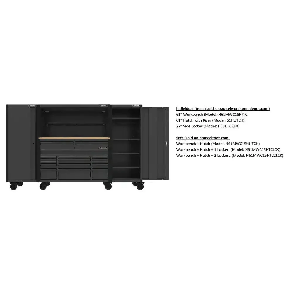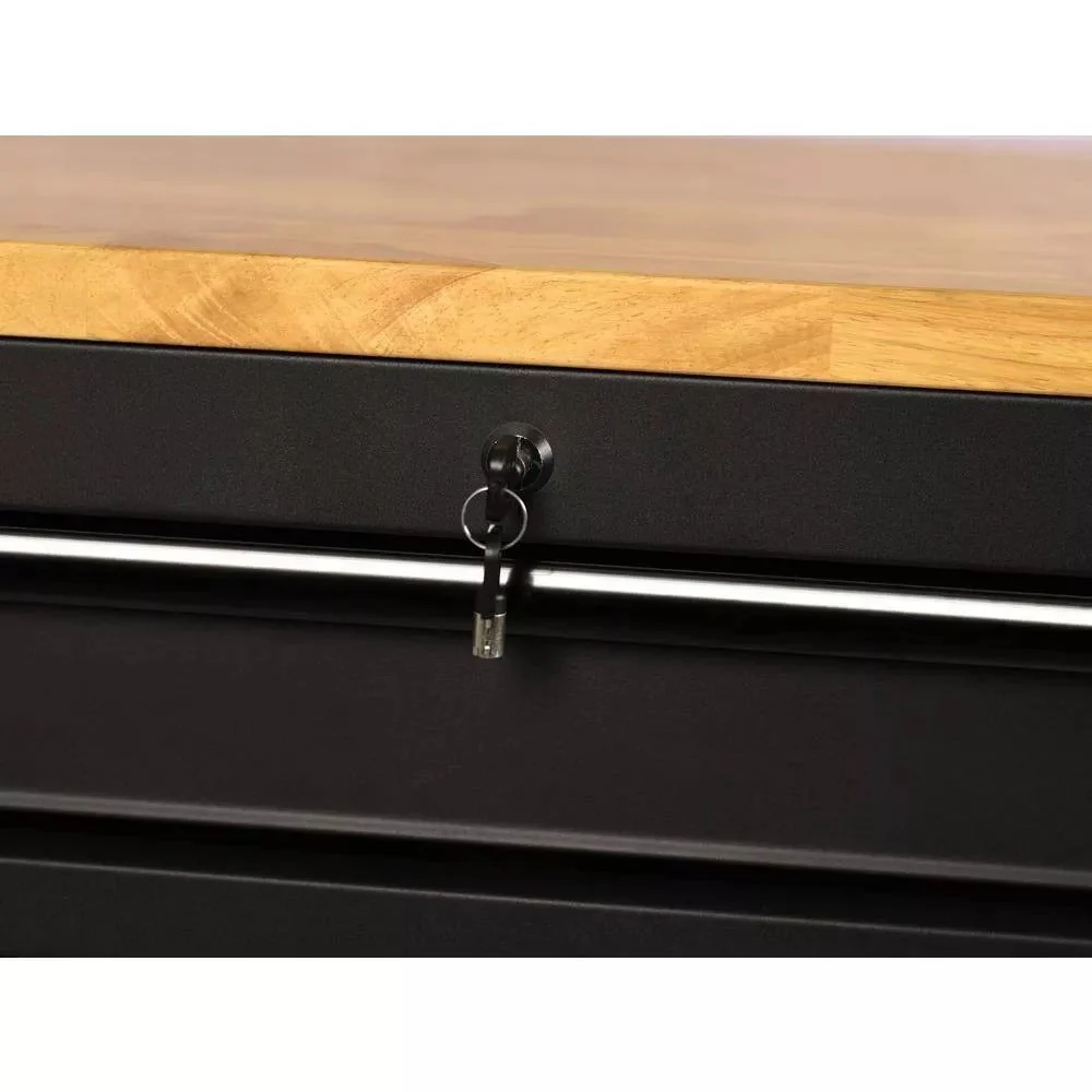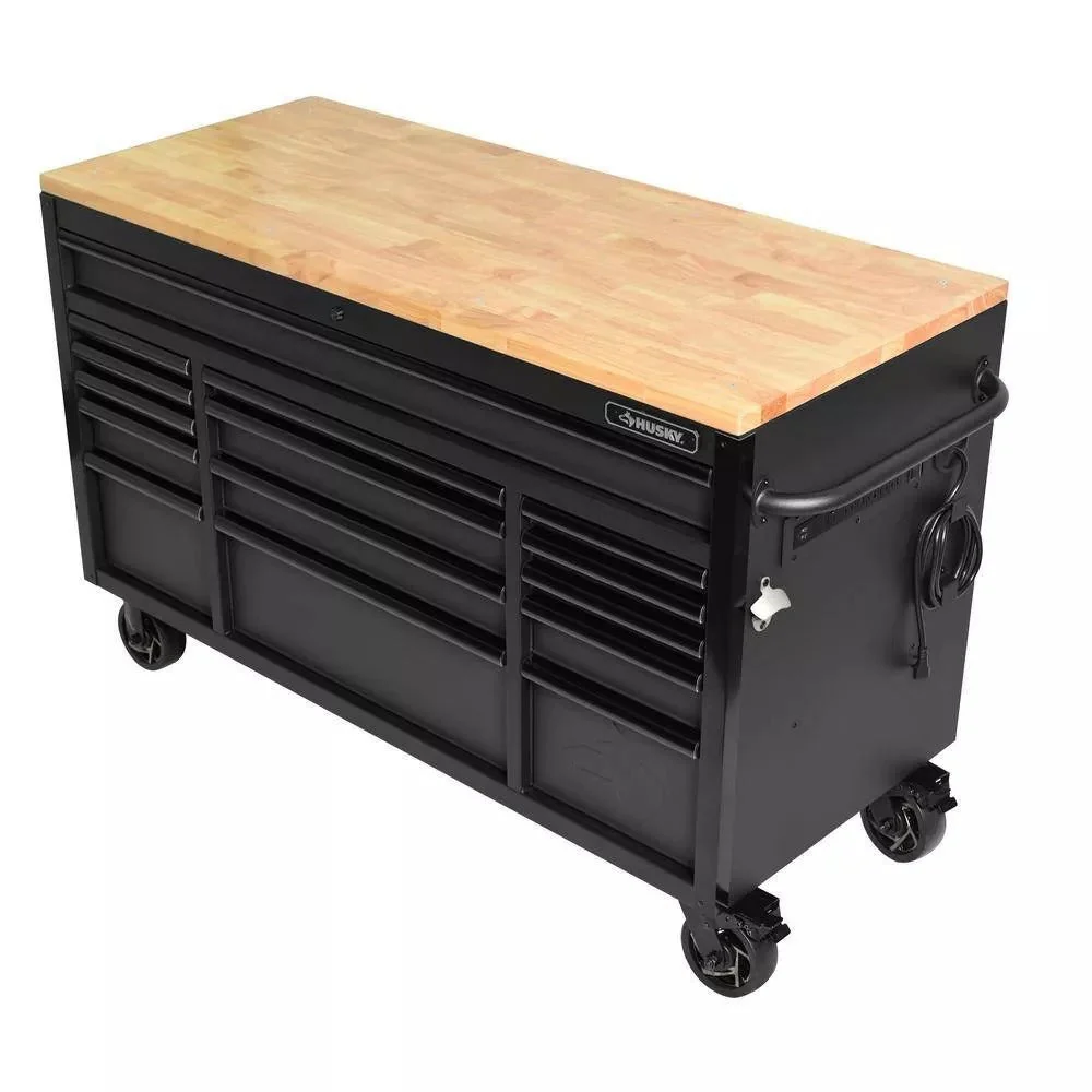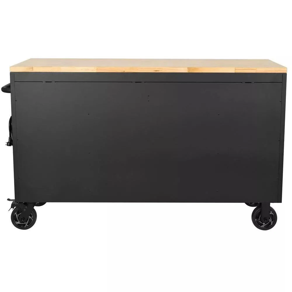 Heavy Duty 61 in. W x 23 in. D 15-Drawer Mobile Workbench with Solid Wood Top